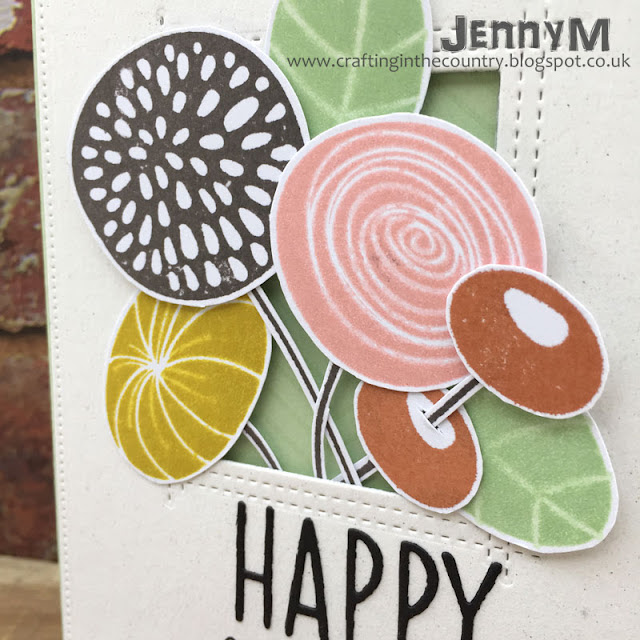 I decided to make a simple cluster of flowers on stems to pop through the Rectangle Peek-a-boo window which is currently out of stock but any aperture die would work here.
